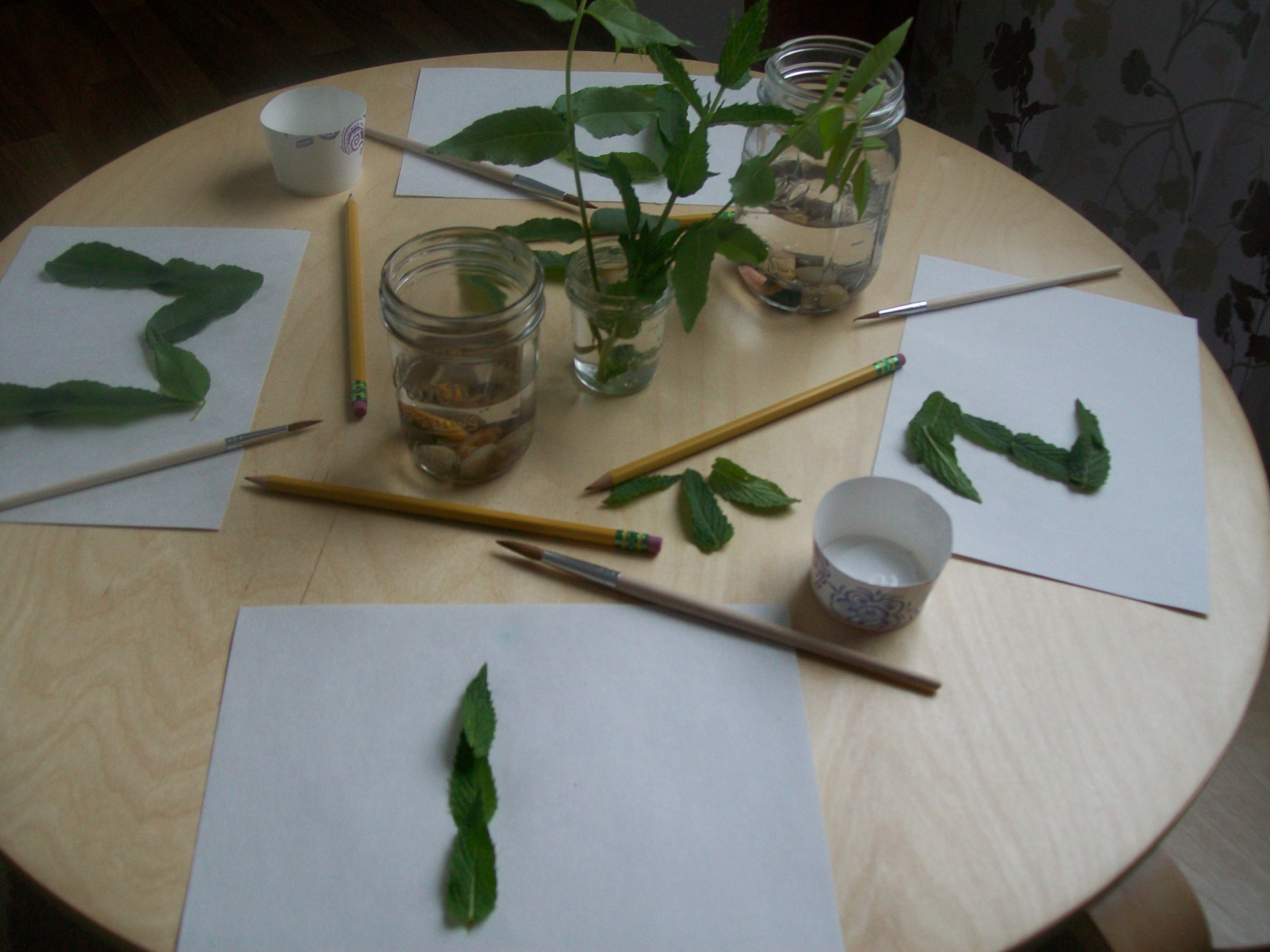 Another aspect I wanted to discuss is the texture and scent of both leaves.  One leaf is smooth and long, while the other is shorter and rougher.  And one leaf has a strong lemon-mint smell.  So many discussions and further studies in this one provocation.  Science, number and letter recognition, texture, relation to real life experiences and so much more all from this simple provocation using materials we all have access to.