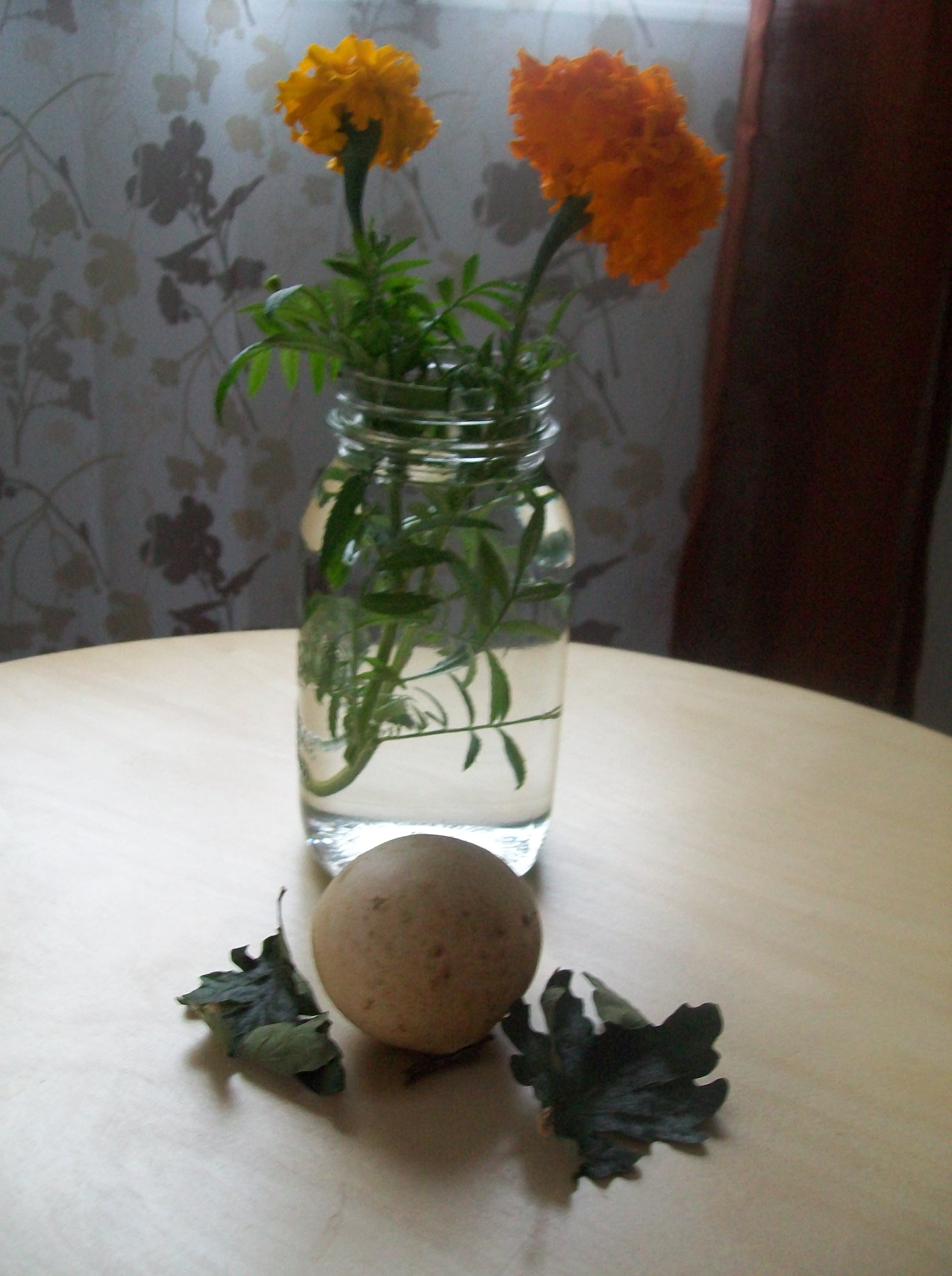100_8126 Oak trees are so pretty, but sometimes they will react to bees trying to infest the branches to make their nests.  The infestation causes the tree to form galls.  In the picture to your right are two oak leaves and one example of a gall.  For those of you who have oak trees galls are something you may want to get rid of, but for the purposes of education I wanted to explore this as a provocation for young minds.