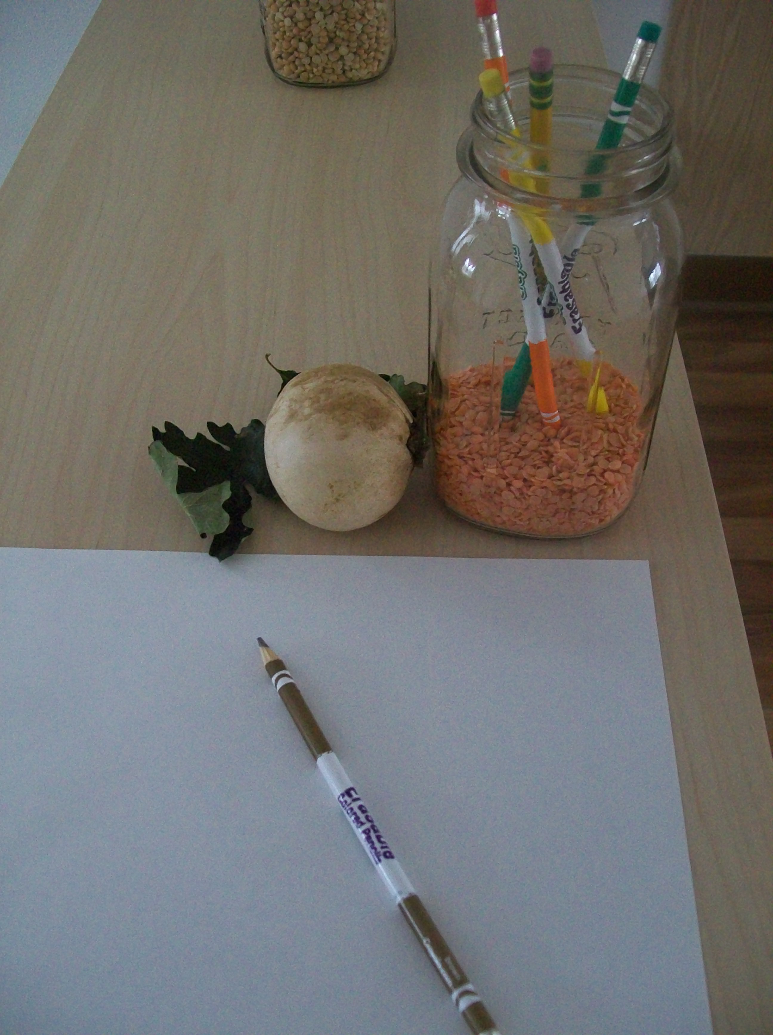 100_8134  One way in which the children will construct knowledge about this subject is by drawing their own version of a gall.  So I’ve set up one provocation allowing for only one child at a time to examine and draw the gall if she/ he chooses to.  For a project approach other areas of interest are set up with more information about oat trees, so the rest of the class is engaged in different investigations of oak trees and the formation of galls.  With projects their are aspects that children will engage in together as a whole group, in two’s as a team or as individuals.  All aspects will come together as a whole in the end.  Depending on how in depth the children wish to go with this scientific inquiry, we may end up doing a culminating event in which we not only show the process from start to finish and all of the in between, but all of our reflections as well.  We may be able to display our findings and put together an event for families to come and learn about galls too! :)