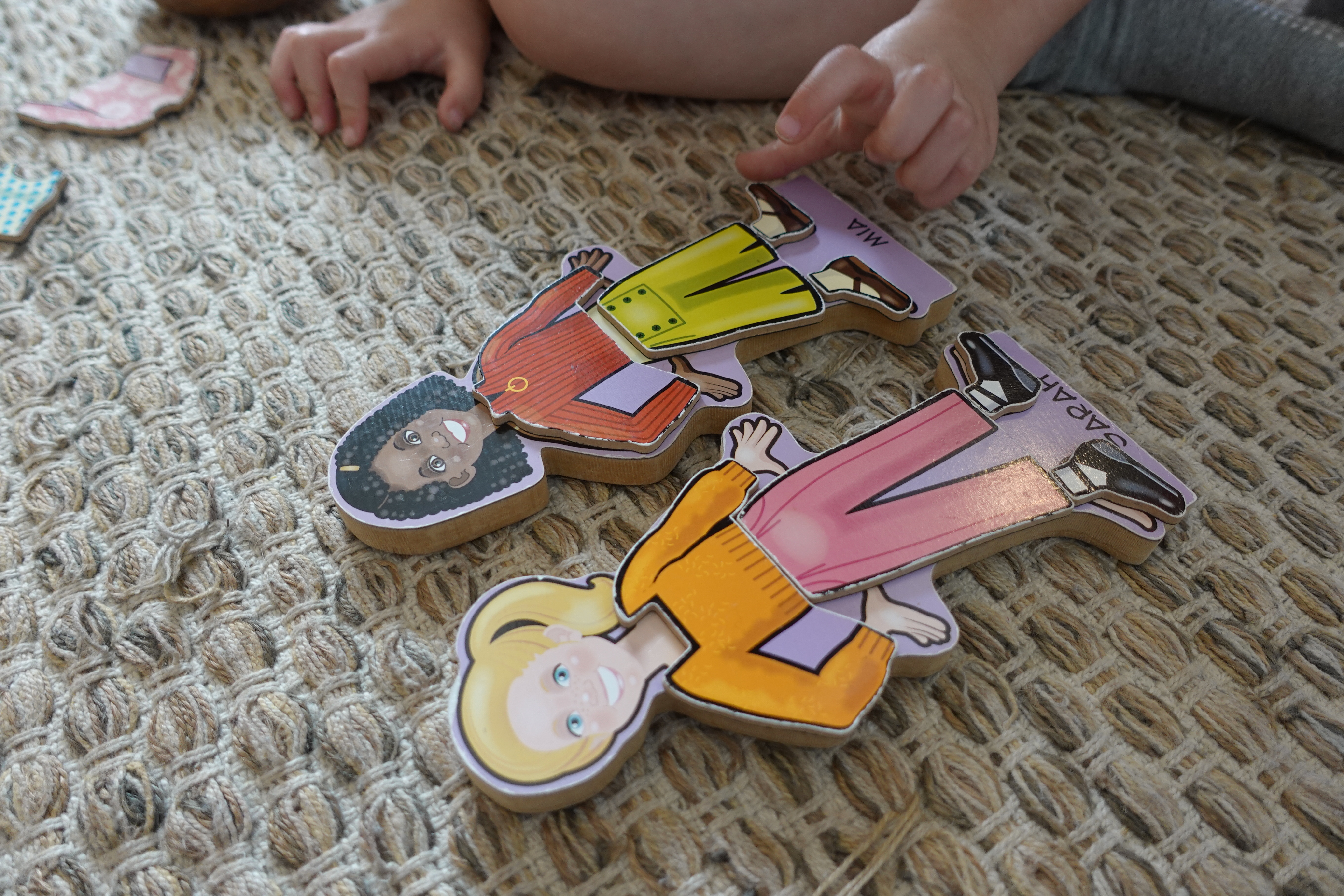 Magnetic dolls, lacing cards, and block construction all have many things in common, but for this posting, we will focus on the fine motor skills. Magentic dolls may not seem like something that would support young children’s journey to printing/ writing, but this is another useful fine motor form of play that serves many purposes. Magnet dolls seem pretty easy to engage with. Still, when you have witnessed many a young child at various stages of fine motor development trying to dress the dolls, it really is another aspect of how development has stages, and it takes time to get to each one. When children are first navigating magnets, the force of the push and pull is both off-putting and attractive to the child. It is something they want to master, yet in the early stages of fine motor muscle growth, they lack the strength and precision to position the pieces in the correct space and evenly on the doll. As the children grow accustomed to magnets and gain more experience using them, their ability to clothe the dolls with these magnetic pieces becomes smooth and precise. As with all materials in a classroom geared towards open-ended play, the ability to dress magnetic dolls tells me a lot about what the child is interpreting when engaged in this provocation. (Many children dressed the dolls in wild and cheerful preschool fashion!) In regard to fine motor development, the positioning of each magnetic clothing piece demonstrates what the child understands about dressing, what level of control they have over the magnets, and what they are visually representing. When children place the magnet clothes in the correct places on the doll, matching the clothes and including socks and shoes, they are demonstrating their progress in developing their fine motor muscles. They are gaining much-needed skills and interest in printing or writing as they continue with materials like these.