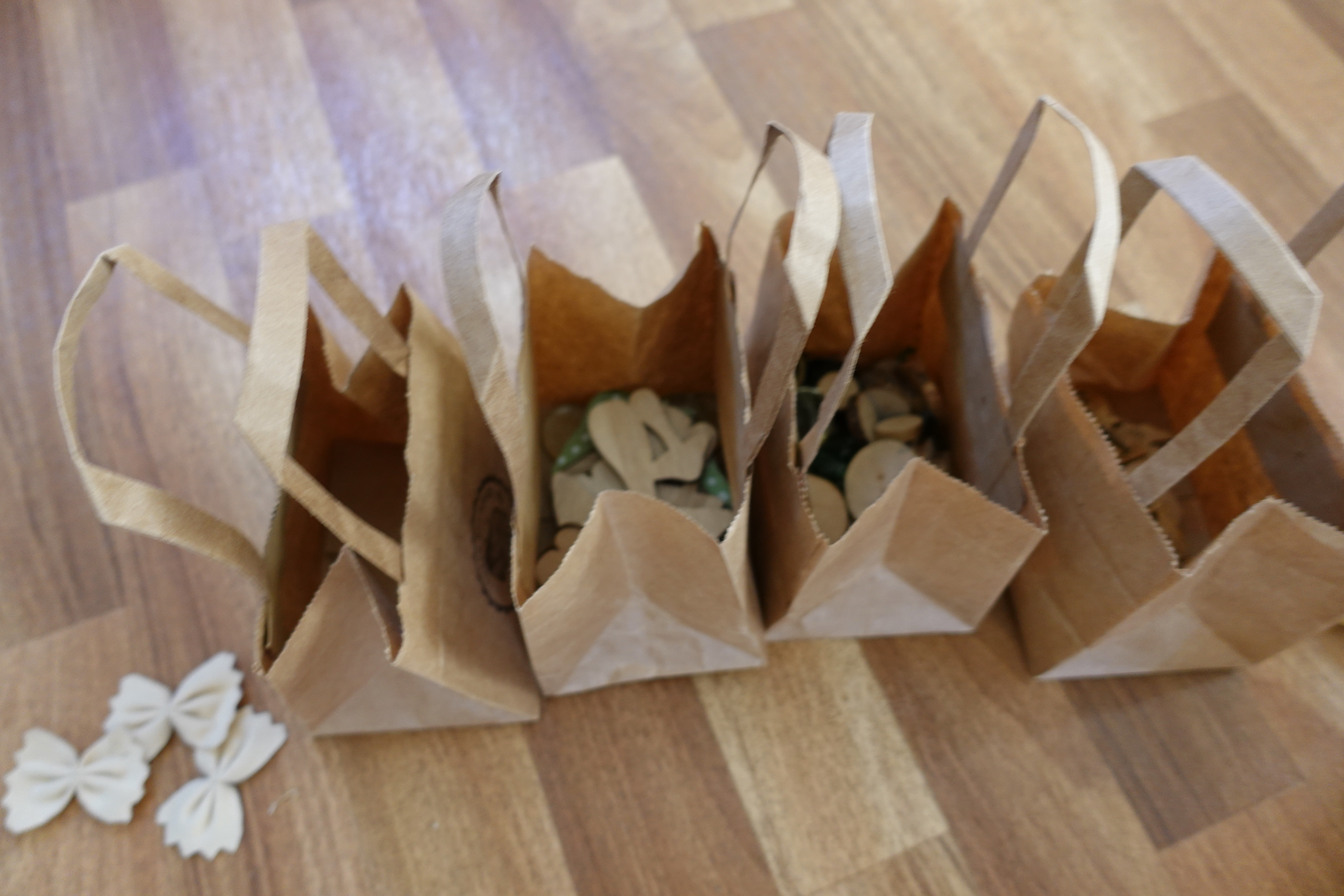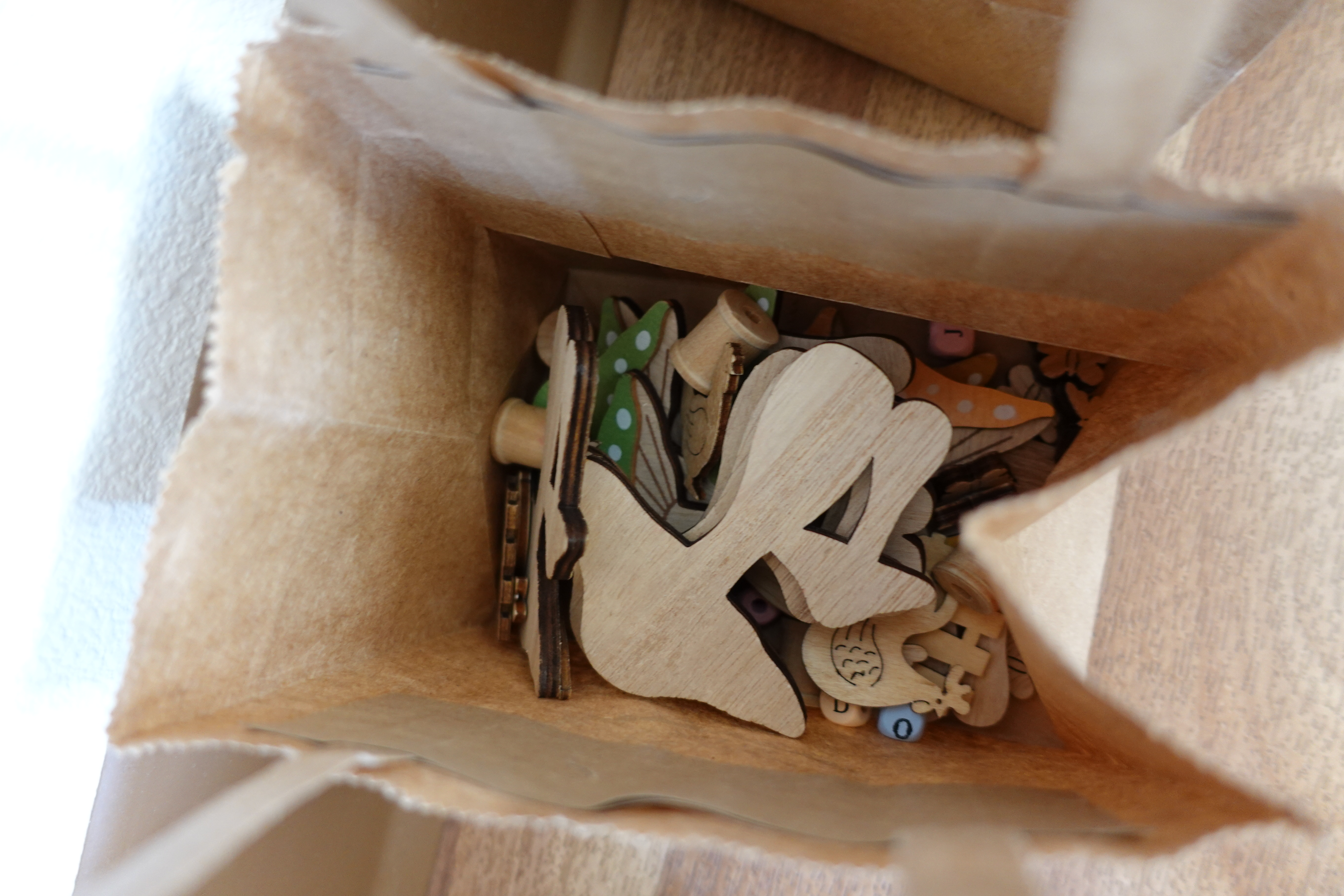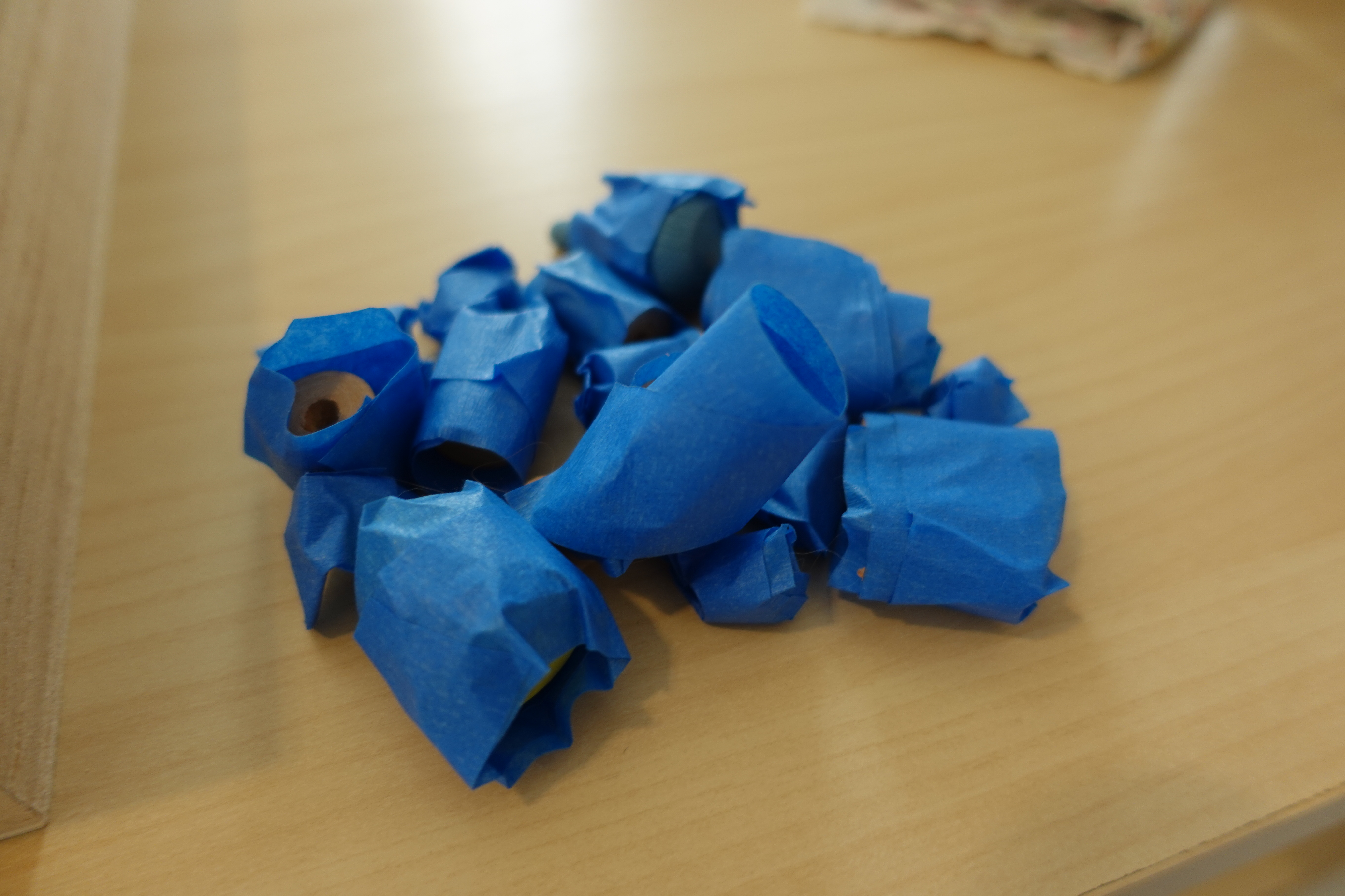 The pictures above (See part #1) show some examples of how the children have used their “loose parts”. One child had an idea that the spools, marbles, and beads were injured creatures and needed bandages, so they used tape to wrap as many as they could. If you are thinking this took some time, yes, it did! When children are interested and committed to their ideas/ projects, they will spend the time they have working to complete as much as they want. We also see some small bags that are filled with “loose parts”. Gathering as many as the tray offered was the priority of one child, and once the bags were filled, this child called the others to come and help unload and set up the dramatic story being created. Fine motor skills are being used without even a second thought, all while engaging in planning, collecting, and managing space and materials. Reaching out and inviting others to join is utilizing their social and communication skills, as well as allowing them to take on a role as “leader” and then a “character” in the dramatic play story. So many decisions go into play, and these are all life skills. Life skills that support fine motor development and growth.